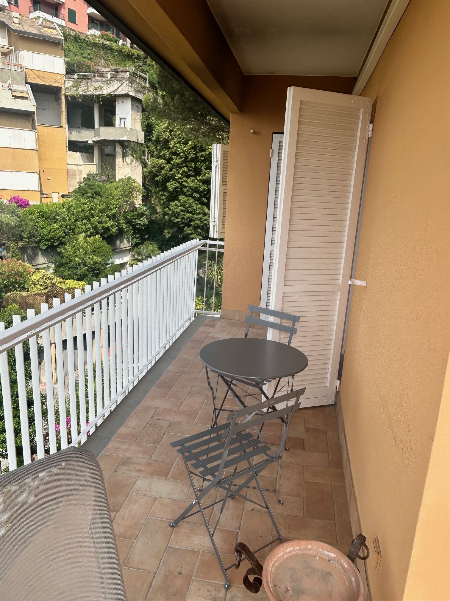 In contesto residenziale, ampio e silenzioso appartamento con piacevo terrazza con vista mare. L’abitazione, con ingresso indipendente, è luminosa, confortevole e riservata, dotata di aria condizionata, internet fibra, box auto (per auto di medie dimendioni) ed è allocata nella tranquilla Pineta di Arenzano (promontorio sul mare con servizio di custodia e sorveglianza H24)